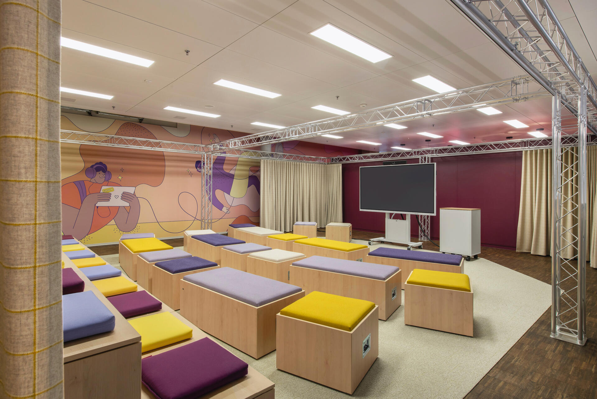 Innerhalb der bestehenden offenen Lernzonen sind vier neue räumliche Module entstanden, die neue Formen von Lehren, Lernen und Arbeiten ermöglichen: